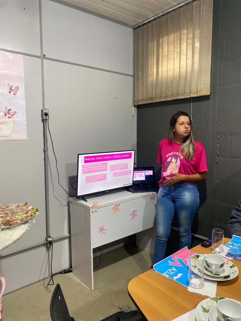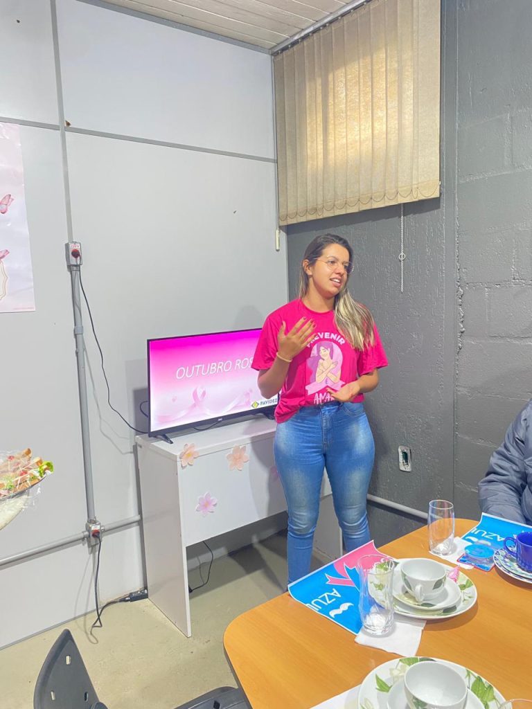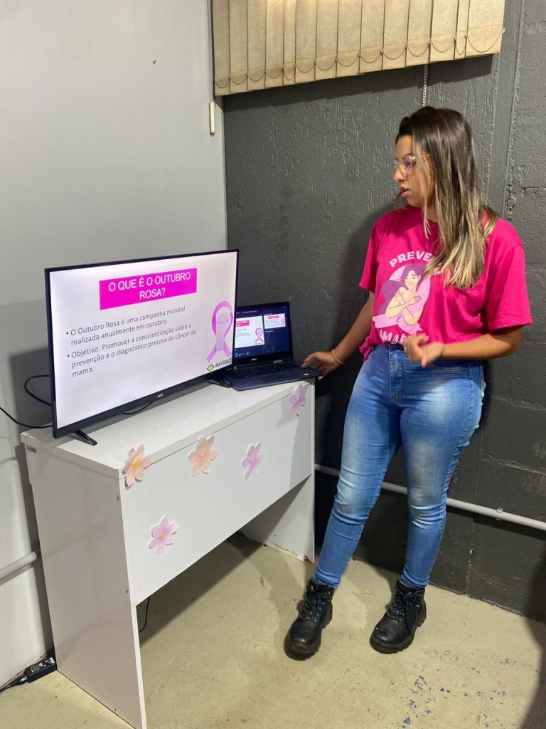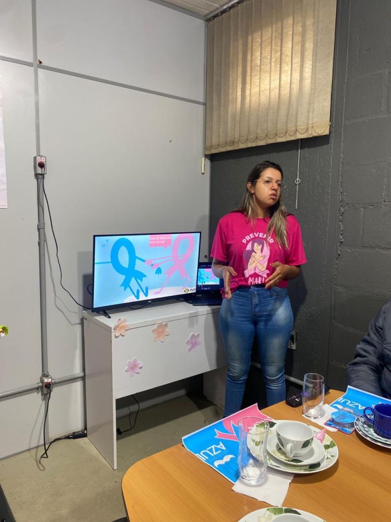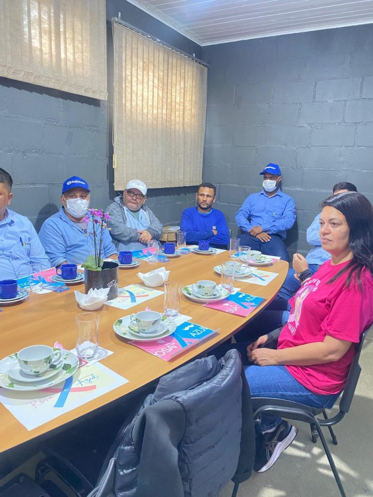 Durante as ações do Outubro Rosa, os colaboradores foram convidados a refletir sobre a importância da prevenção ao câncer de mama. Foram distribuídos materiais informativos com orientações sobre sinais de alerta, fatores de risco e a importância do diagnóstico precoce. Além disso, rodas de conversa e momentos de interação trouxeram acolhimento e incentivo ao autocuidado.